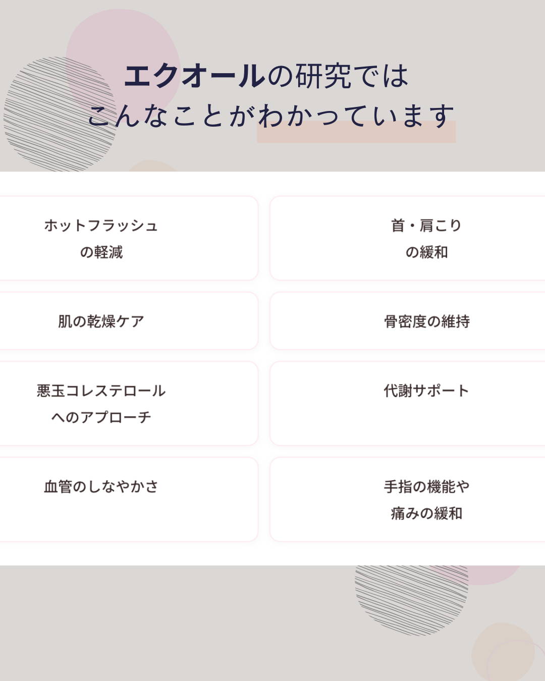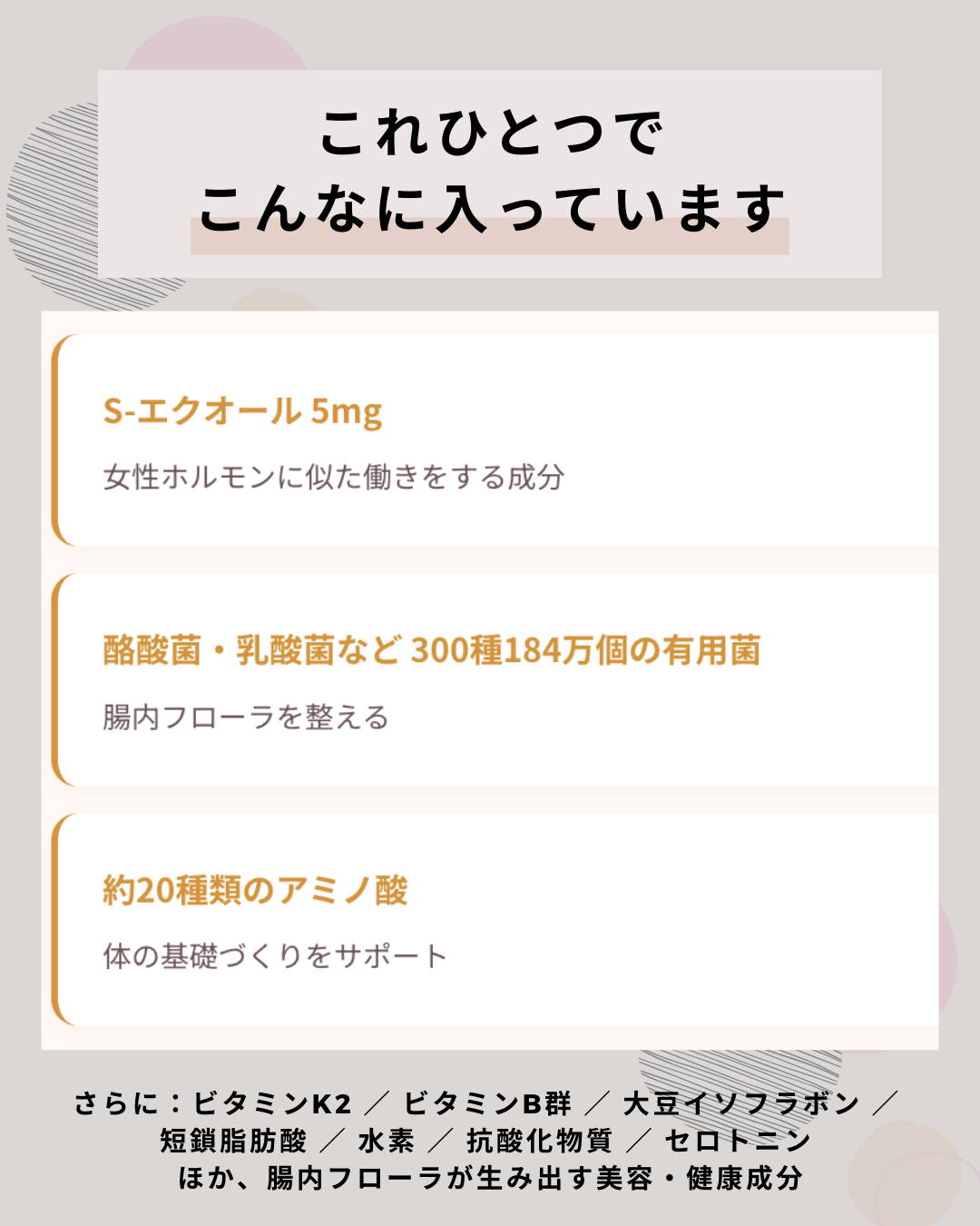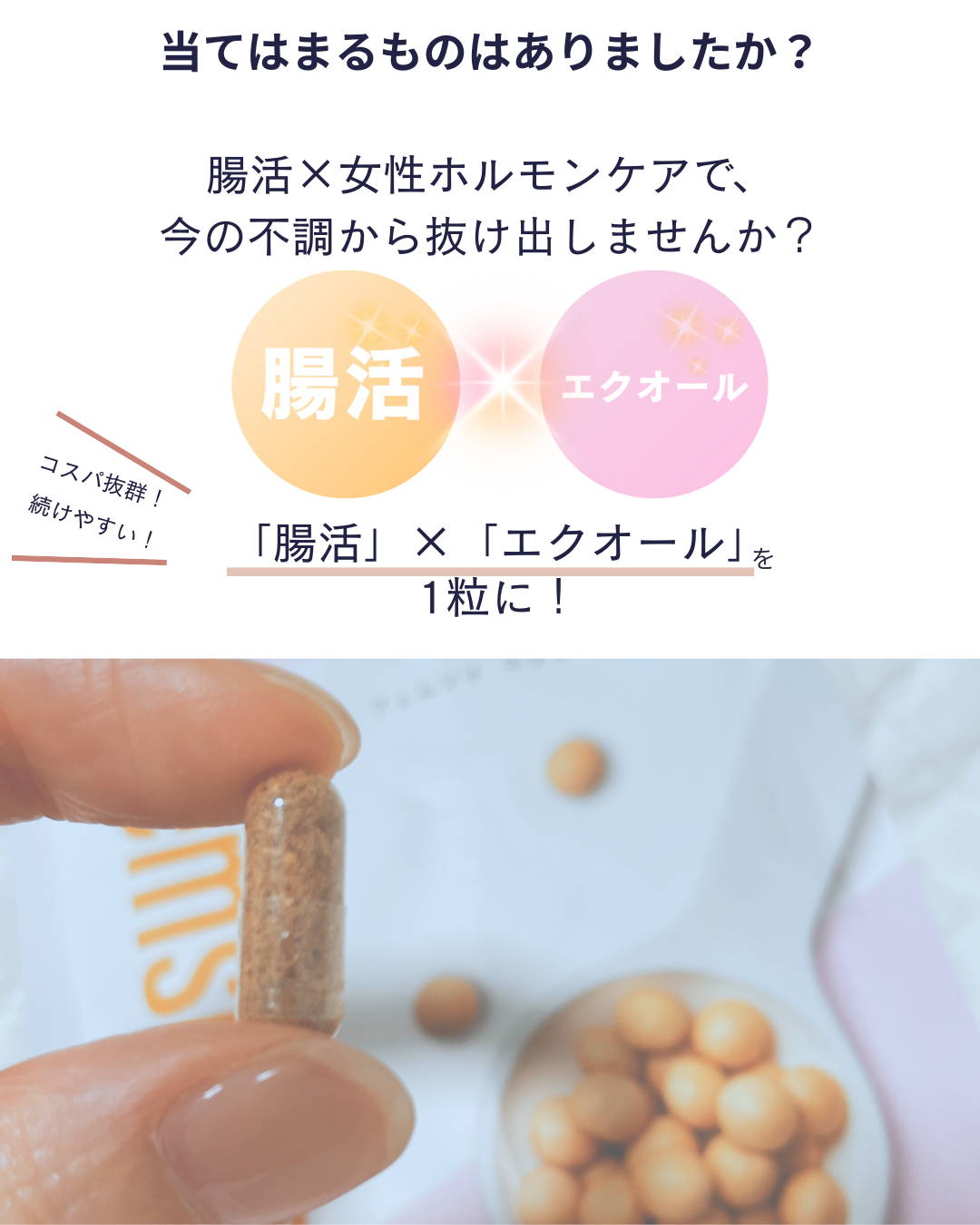 納豆や味噌など、食品で大豆をお召し上がりになるのは問題ございません。大豆イソフラボンのサプリメントの場合は、食品安全委員会で定められている、1日の摂取目安量の上限30mg(大豆イソフラボンアグリコン量)を目安にご利用ください。フェムソイ エクオール プラスの大豆イソフラボン量は、1カプセル6mgとなります。